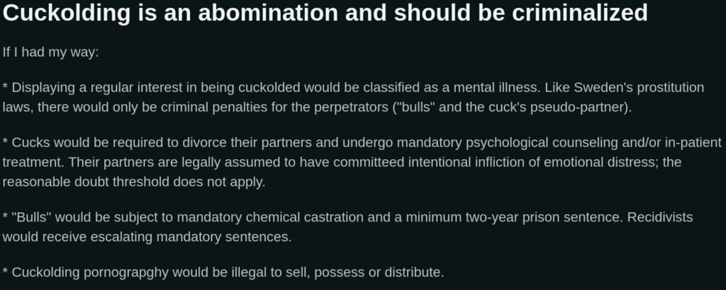 If the argument is that cuckolds are mentally ill therefore they cannot consent, then you need to back that up with some real evidence because that’s a serious claim.